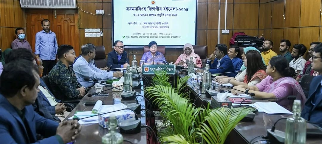 ময়মনসিংহ বিভাগীয় বইমেলা-২০২৫ আয়োজন উপলক্ষ্যে আজ বুধবার ২৬ নভেম্বর বিকেলে প্রস্তুতিমূলক সভা অনুষ্ঠিত হয়েছে। ময়মনসিংহ বিভাগীয় কমিশনারের কার্যালয়ের সম্মেলনকক্ষে কার্যালয়ের আয়োজনে এ সভা অনুষ্ঠিত হয়। সভায় সভাপতিত্ব করেন ময়মনসিংহ বিভাগীয় কমিশনার মিজ্ ফারাহ শাম্মী।