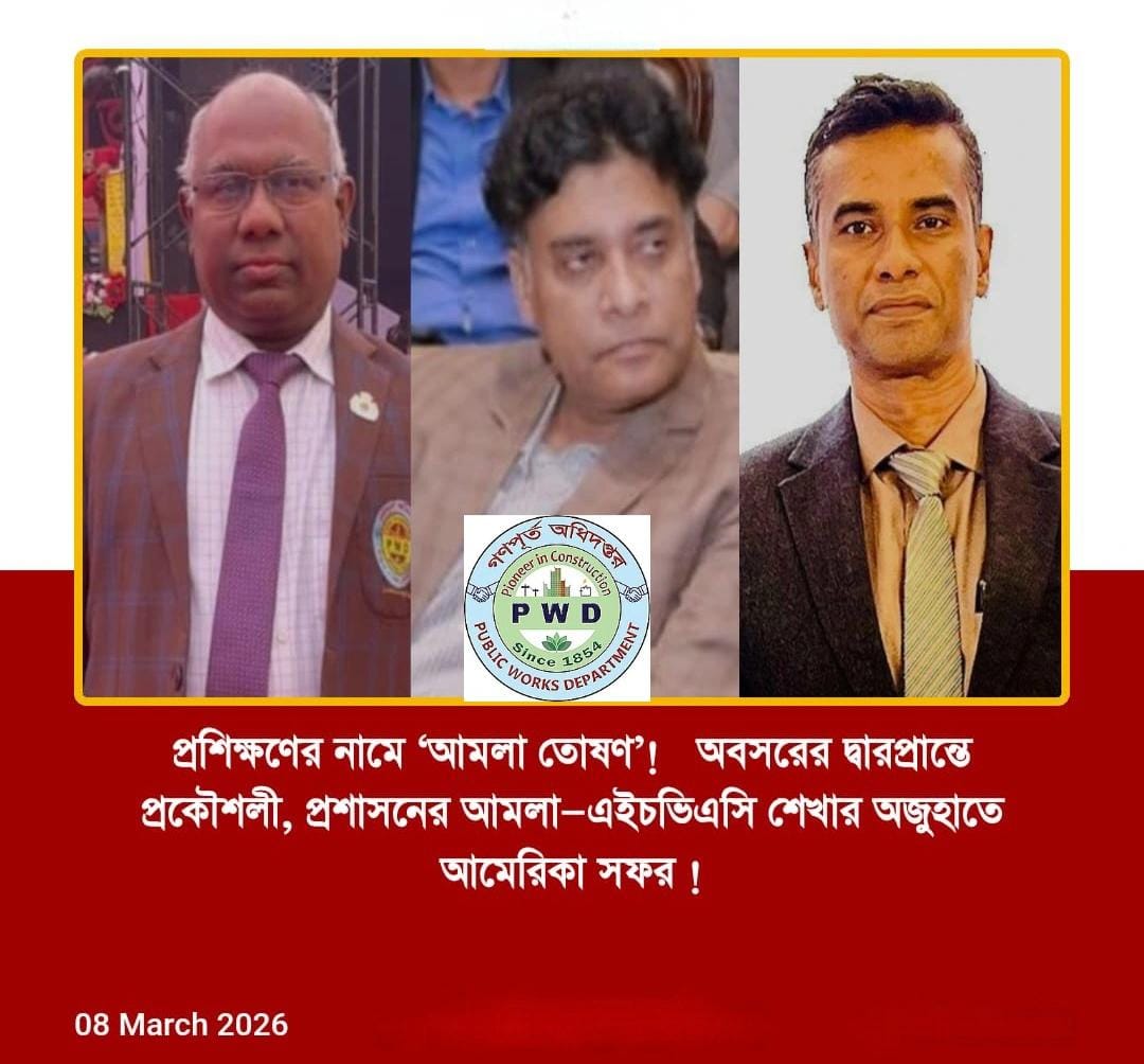 অবসরের দ্বারপ্রান্তে দাঁড়িয়ে থাকা একজন শীর্ষ প্রকৌশলীসহ গৃহায়ণ ও গণপূর্ত মন্ত্রণালয়ের কয়েকজন কর্মকর্তা যুক্তরাষ্ট্রে যাচ্ছেন একটি কারিগরি প্রশিক্ষণে অংশ নিতে। কিন্তু এই সফরকে ঘিরে সংশ্লিষ্ট দপ্তরেই উঠেছে তীব্র প্রশ্ন—এটি কি সত্যিই প্রয়োজনীয় প্রশিক্ষণ, নাকি ক্ষমতার প্রভাব খাটিয়ে বিদেশ ভ্রমণের সুযোগ?