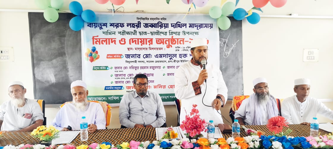 কুমিল্লার চৌদ্দগ্রাম উপজেলার শ্রীপুর ইউনিয়নের ঐতিহ্যবাহী বায়তুশ শরফ লহরী জব্বারিয়া দাখিল মাদ্রাসায় মিলাদ মাহফিলের পবিত্র আবহে অনুষ্ঠিত হলো ২০২৬ সালের দাখিল পরীক্ষার্থীদের বিদায় অনুষ্ঠান। রবিবার সকাল ১০টায় মাদ্রাসার অডিটোরিয়াম হলরুমে আয়োজনটি যেন পরিণত হয় এক আবেগ, ভালোবাসা আর স্বপ্নময় বিদায়ের মিলনমেলায়।