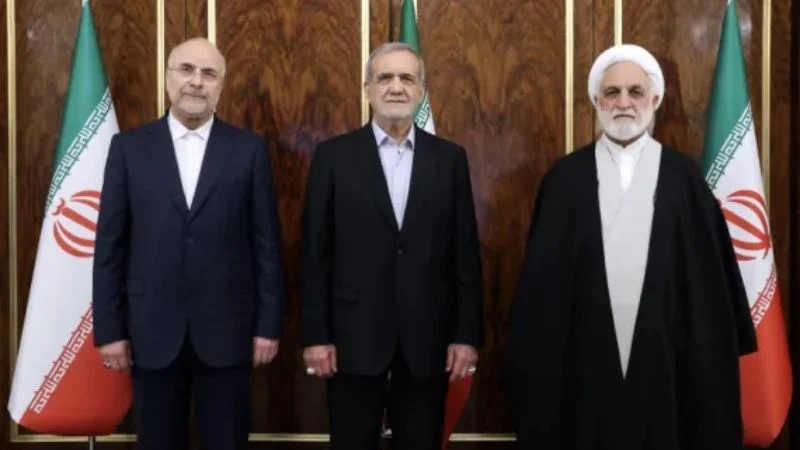 সাম্প্রতিক পরিস্থিতি নিয়ে বৈঠক করেন ইরানের স্পিকার (বাঁ থেকে), প্রেসিডেন্ট ও প্রধান বিচারপতি। সোমবার তেহরানে। ছবি: আলজাজিরার সৌজন্যে