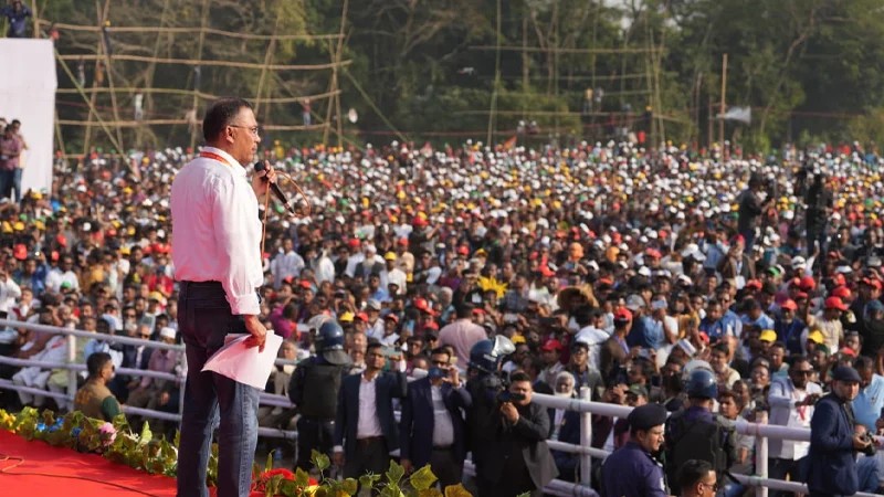 মৌলভীবাজারে নির্বাচনী জনসভায় বিএনপির চেয়ারম্যান তারেক রহমান। ছবি: সংগৃহীত
