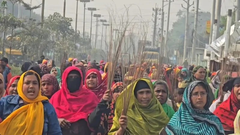 কুষ্টিয়া আমির হামজার বিরুদ্ধে ঝাড়ু মিছিল করছে একদল নারী