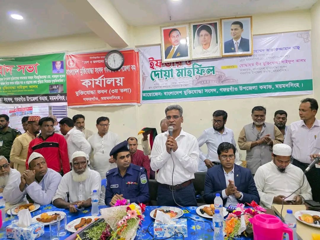 গফরগাঁও উপজেলা মুক্তিযোদ্ধা কমান্ডার সাইফুল আলমের সভাপতিত্বে এবং বীর মুক্তিযোদ্ধা ফরিদুজ্জামানের সঞ্চালনায় অনুষ্ঠানে আরও উপস্থিত ছিলেন উপজেলা বিএনপির নেতৃবৃন্দ ইসহাক আলী চেয়ারম্যান, আব্দুল্লাহ আল মামুন, আবু সাঈদ মাস্টার, ফজলুল হক, স্বপন মিয়াসহ স্থানীয় গণ্যমান্য ব্যক্তিবর্গ।