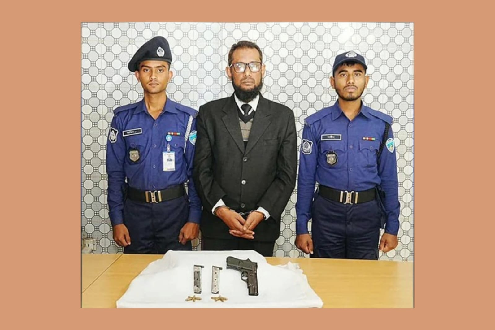 গুলি ভর্তি বিদেশি পিস্তলসহ গ্রেপ্তার কুমিল্লা আদালতের সহকারী সরকারি কৌঁসুলি (এজিপি) এম মাসুদুল হক। ছবি: সংগৃহীত