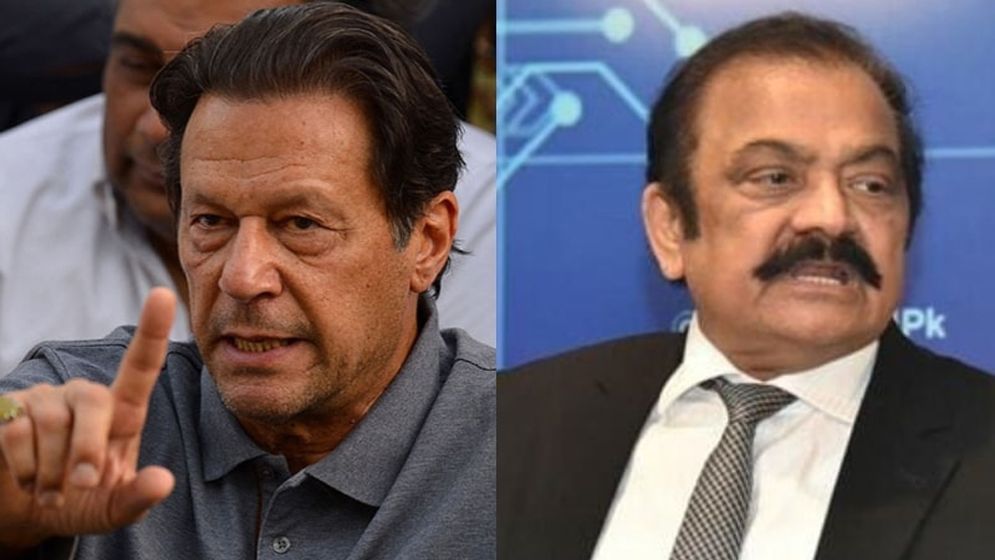 পাকিস্তানের সাবেক প্রধানমন্ত্রী ইমরান খান ও বর্তমান প্রধানমন্ত্রী শাহবাজ শরিফের উপদেষ্টা রানা সানাউল্লাহ। ছবি: সংগৃহীত