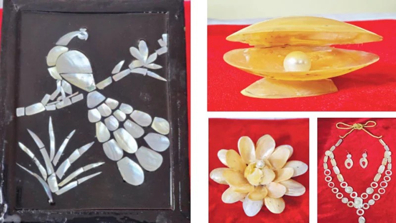 ১৫ দিনের প্রশিক্ষণে অংশ নেওয়া উদ্যোক্তাদের তৈরি মুক্তা-ঝিনুকের অলংকার। বৃহস্পতিবার গোপালগঞ্জ জেলা মৎস্য কর্মকর্তার কার্যালয়ের প্রশিক্ষণ কেন্দ্র ছবি: সংগৃহীত