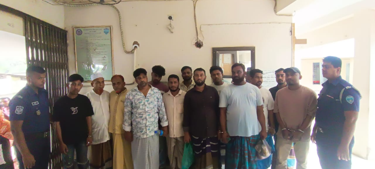 বৈষম্যবিরোধী ছাত্র আন্দোলনে আবুবকর হত্যা চেষ্টা মামলায় এবং নাশকতার পরিকল্পনার অভিযোগে দায়েরকৃত মামলায় শনিবার দুপুরে গ্রেপ্তারকৃতদের আদালতের মাধ্যমে কারাগারে পাঠানো হয়ে‌ছে।গ্রেপ্তারকৃতরা হলো, গুনাইঘর গ্রামের মৃত জাকির হোসেনের ছেলে যুবলীগ কর্মী মো. জালাল (২৮);ওয়াহেদপুর গ্রামের জাহাঙ্গীর হোসেন সরকারের ছেলে ও সুবিল ইউনিয়ন স্বেচ্ছাসেবকলীগের সভাপতি আল আমিন সরকার (৩৮); বুড়িরপাড় গ্রামের মোহর আলীর ছেলে আওয়ামী লীগ কর্মী হরমুজ মুহুরী (৫০) এবং একই গ্রামের আব্দুল মোতালেবের ছেলে মোশারফ হোসেন (৫৪); সাবেরপুকুরপাড় গ্রামের গোলাম মোস্তফার ছেলে ছাত্রলীগ সদস্য গোলাম কিবরিয়া (২২); বরাট গ্রামের মো. সেলিমের ছেলে যুবলীগ সদস্য মো. সুজন (২৬); পদ্মকোট গ্রামের মজিবুর রহমানের ছেলে জামাল হোসেন (৪৭) এবং একই গ্রামের মৃত মনছুর আলীর ছেলে আবুল কালাম ভোলা (৪০); বক্রিকান্দি গ্রামের মো. জয়নাল আবেদীনের ছেলে মো. রেজাউল করিম (২৭); দক্ষিণ ভিংলাবাড়ী গ্রামের মৃত বাচ্চু মিয়ার ছেলে পৌর যুবলীগের সহসভাপতি আল আমিন (৪২); একই গ্রামের মো. সৃজান (১৮), মো. সফিকুল ইসলাম (২৩) এবং ২ নম্বর ওয়ার্ড আওয়ামী লীগের সভাপতি মো. বিল্লাল হোসেন (৪৪)।