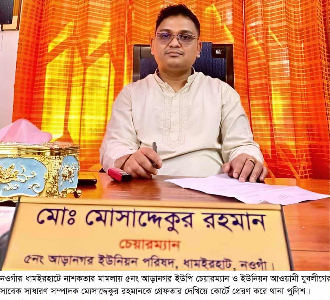 ধামইরহাটে নাশকতার মামলায় ইউপি চেয়ারম্যান মোসাদ্দেকুর গ্রেফতার