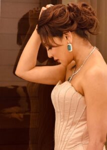 মেকআপ খুবই নিখুঁত—হাইলাইটেড স্কিন, চুল খোঁপা করে সাজানো, যা তার ফেস কাটকে সুন্দরভাবে হাইলাইট করছে। ছবি: ফেসবুক