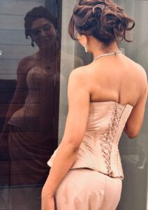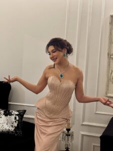 পোশাকের উপরের অংশটি করসেট স্টাইল ও কারুকাজ করা, যা তার লুককে আরও আধুনিক ও ফ্যাশনেবল করেছে। ছবি: ফেসবুক