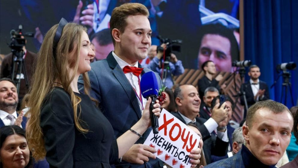 পুতিনের বার্ষিক লাইভ টেলিভিশন ভাষণ চলাকালে প্রেমিকাকে বিয়ের প্রস্তাব সাংবাদিকের। ছবি: সংগৃহীত