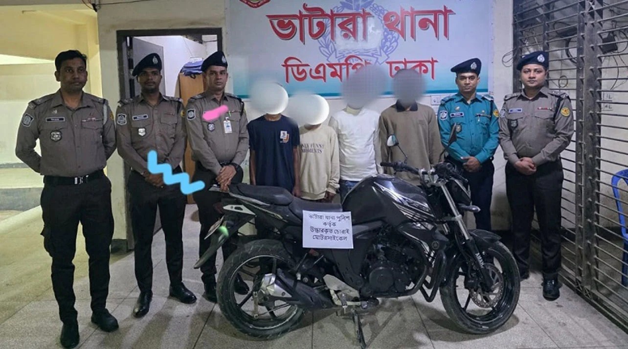 ভাটারা থানা থেকে চুরি হওয়া মোটরসাইকেল উদ্ধার, গ্রেপ্তার ৪