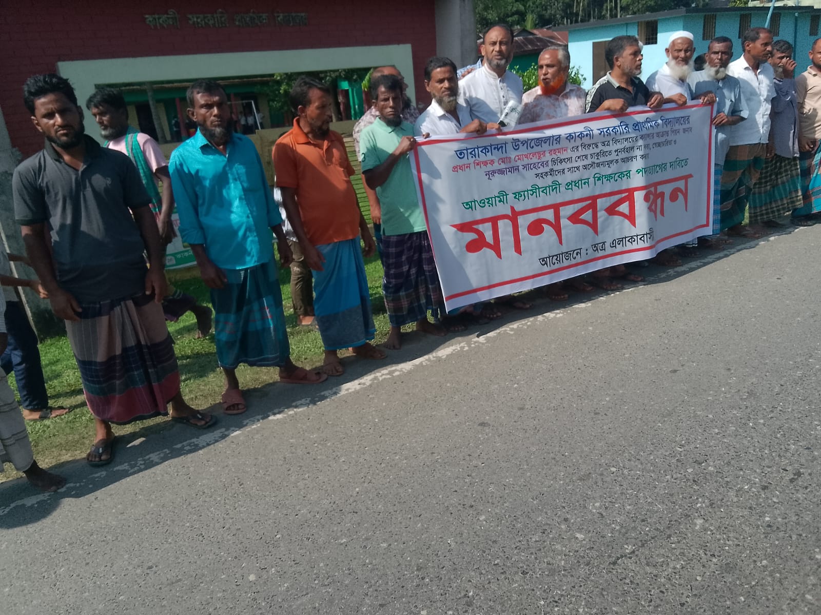 ময়মনসিংহে তারাকান্দা উপজেলার কাকনী সরকারি প্রাথমিক বিদ্যালয়ের প্রধান শিক্ষক মোখলেসুর রহমানের বিরুদ্ধে নানা অভিযোগের প্রেক্ষিতে মানববন্ধন করেছে স্থানীয় জনগণ।