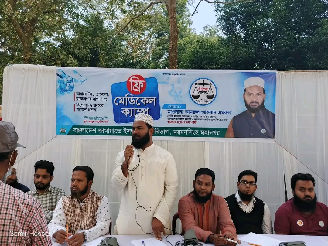 ময়মনসিংহ জামায়াত মনোনীত সংসদ সদস্য পদ প্রার্থী মাওলানা মোঃ কামরুল আহসান এমরুল এর সৌজন্যে জামায়াতে ইসলামী ময়মনসিংহ মহানগরের ফ্রি মেডিকেল ক্যাম্প অনুষ্ঠিত হয়।