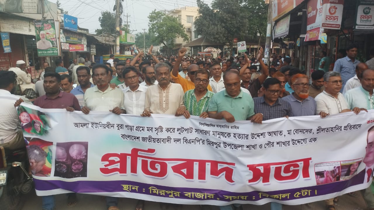 এই ঘটনাকে কেন্দ্র করে বিক্ষোভ ও প্রতিবাদ সভায় রীতিমতো উত্তাল হয়ে ওঠে মিরপুর উপজেলা বিএনপি ও এর অঙ্গ-সহযোগী সংগঠনগুলো। সভার মঞ্চ যেন পরিণত হয় প্রতিবাদের আগুনঝরা ভাষণের এক আবেগঘন অঙ্গনে।