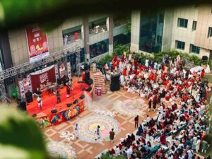 সকালের সূর্য ওঠার সঙ্গে সঙ্গে শুরু হয় বর্ষবরণ অনুষ্ঠান। ঐতিহ্যবাহী মঙ্গল শোভাযাত্রায় ফুটে ওঠে বাংলার গ্রামীণ জীবন, লোকসংস্কৃতি আর চিরচেনা রূপকথার প্রতিচ্ছবি। রঙিন মুখোশ, আলপনা আর নান্দনিক সাজে সেজে ওঠা শিক্ষার্থীরা যেন হয়ে উঠেছিল জীবন্ত শিল্পকর্ম।