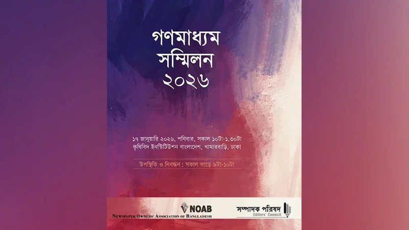 রাজধানীর খামারবাড়ি কৃষিবিদ ইনস্টিটিউশন বাংলাদেশ কমপ্লেক্স মিলনায়তনে আজ সকাল ১০টা থেকে দুপুর দেড়টা পর্যন্ত ‘গণমাধ্যম সম্মিলন ২০২৬’ অনুষ্ঠিত হবে। সম্মিলনে গণমাধ্যমের গণতান্ত্রিক পরিবেশ ও স্বাধীনতা রক্ষা এবং সাংবাদিকদের নিরাপত্তা নিশ্চিত করা ও গণমাধ্যমকর্মীদের পেশাগত মর্যাদা ও অধিকার সমুন্নত রাখার লক্ষ্যে সাংবাদিকরা তাদের বক্তব্য তুলে ধরবেন।