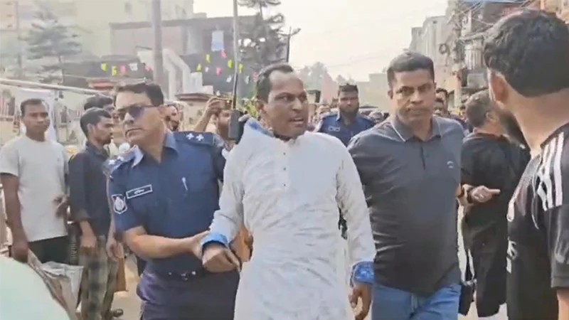 ঝটিকা মিছিল থেকে কার্যত্রম নিষিদ্ধ আওয়ামী লীগের দুই নেতাকে আটক করে নিয়ে যায় পুলিশ। ছবি: সংগৃহীত