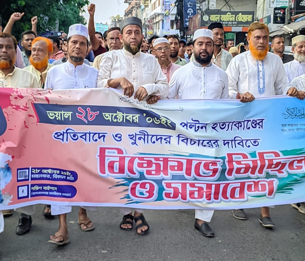 নেতৃবৃন্দরা আরও বলেন, খুনি হাসিনা ও তার দল আওয়ামী লীগকে বাংলার জমিন থেকে চিরতরে মুছে ফেলতে হবে।
