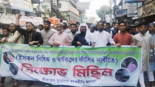 সীতাকুণ্ডে ইসকন বিরোধী মুসলিম তাওহিদী জনতার বিক্ষোভ মিছিল