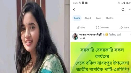 মাধবপুরে বৈষম্যের শিকার নাগরিক পার্টির নেত্রী আসমা আক্তার