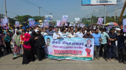 রোকন মেম্বারের বহিস্কার আদেশ প্রত্যাহারের দাবীতে মানবন্ধন করেছেন ছলিমপুরবাসী
