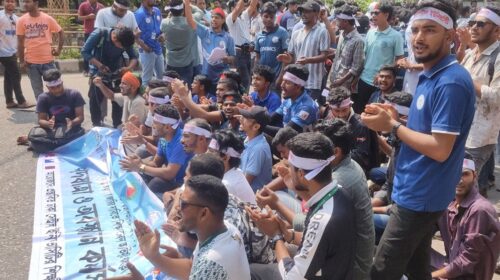শিক্ষা ভবনের সামনে ৭ কলেজ শিক্ষার্থীদের অবস্থান কর্মসূচি