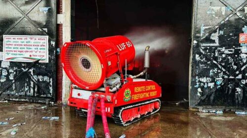 বিমানবন্দরে আগুন নেভাতে রোবট ব্যবহার করছেন ফায়ার সার্ভিস
