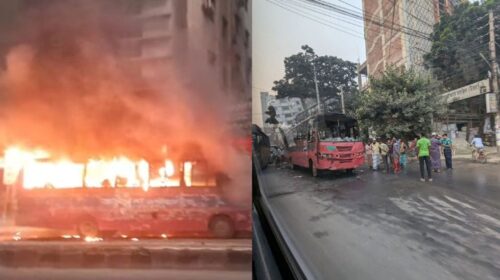রাজধানীতে দুই বাসে আগুন লাগিয়েছে দুর্বৃত্তরা