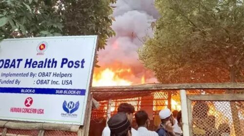 রোহিঙ্গা ক্যাম্পে আগুনে বসতঘর ও হাসপাতাল পুড়ে ছাই