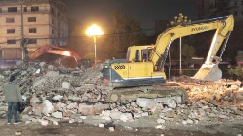 বুলডোজার দিয়ে আ.লীগ অফিস গুঁড়িয়ে দিলেন বিক্ষোভকারীরা