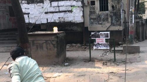 জবিতে রাজাকারদের প্রতীকী ছবিতে জুতা নিক্ষেপ কর্মসূচি