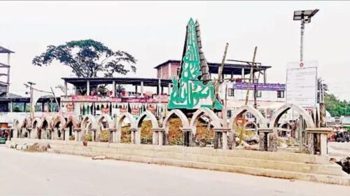 মুগ্ধ পর্যটক ও দর্শনার্থীরা, ভাণ্ডারিয়ায় আরবি ক্যালিগ্রাফি খচিত দৃষ্টিনন্দন তিন স্তম্ভ