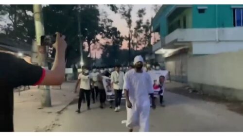 কাফনের কাপড় জড়িয়ে নিষিদ্ধ ছাত্রলীগের ঝটিকা মিছিল